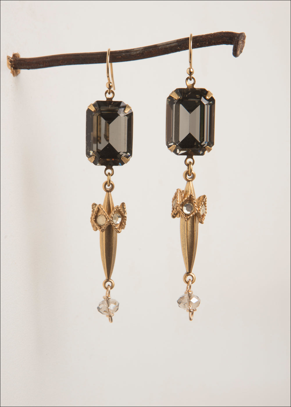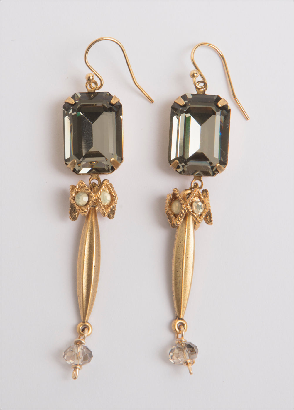 Vintage AB Emerald Cut Crystal / Plated Gold /