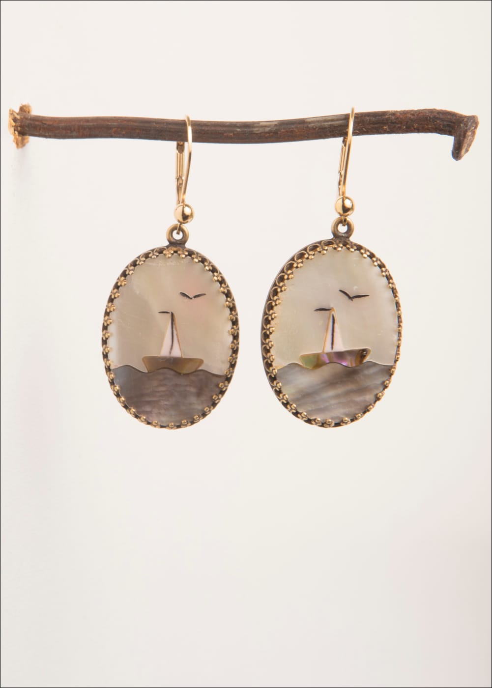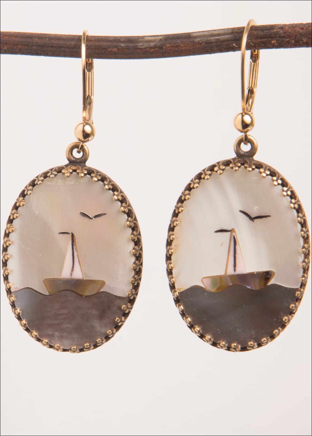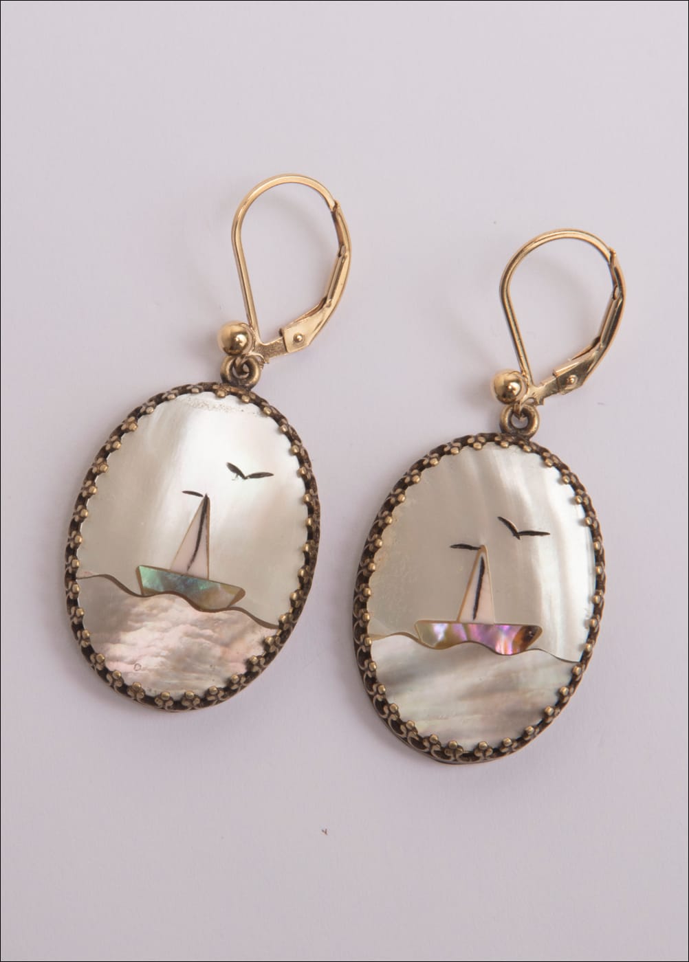Vintage Mother of Pearl Inlay Cabochons 14kt. G.F. Lever backs