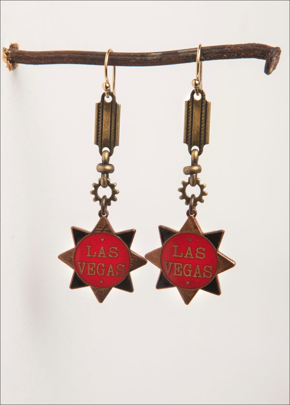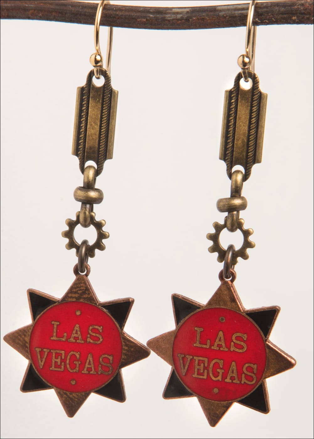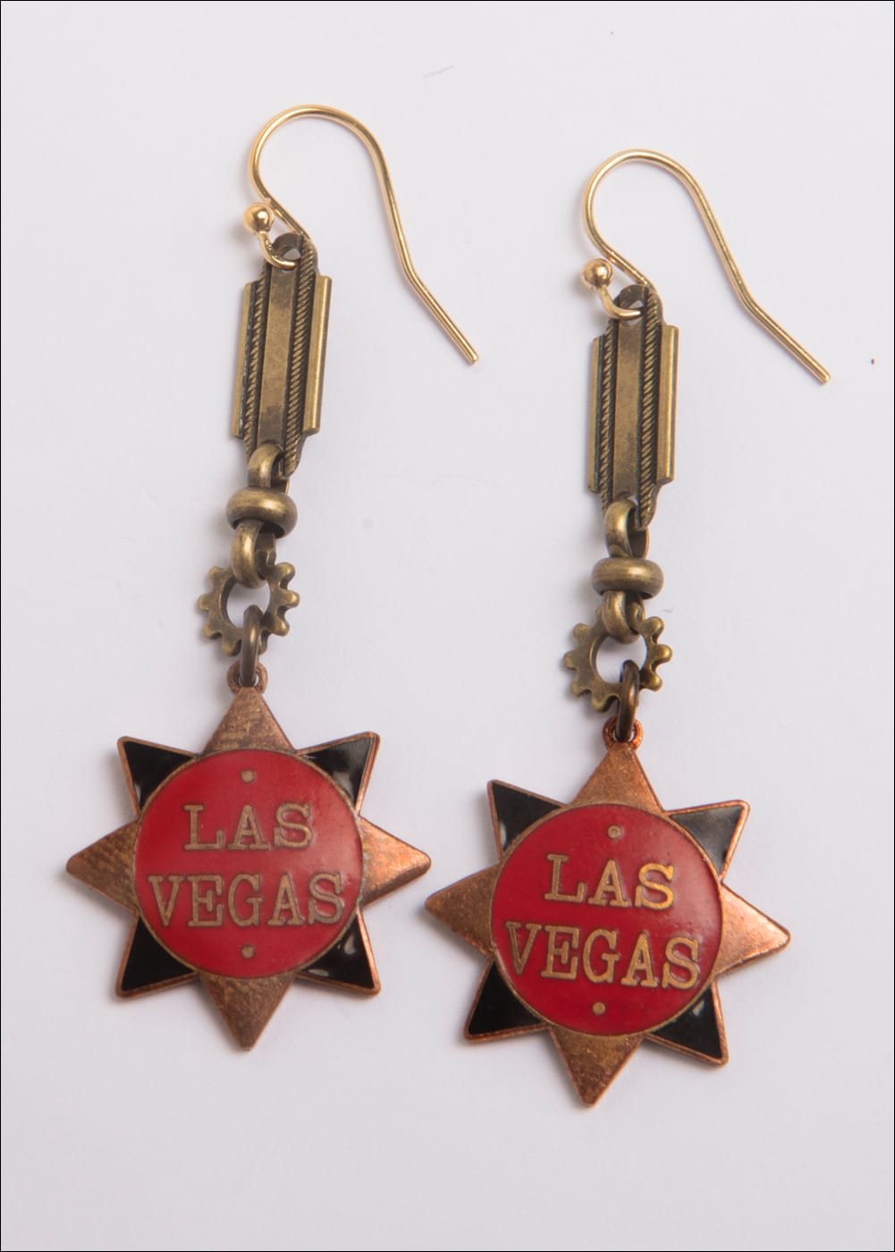 Vintage Vegas Enamel Shields 2 1/4" L / 14kt. G.F. French Wires