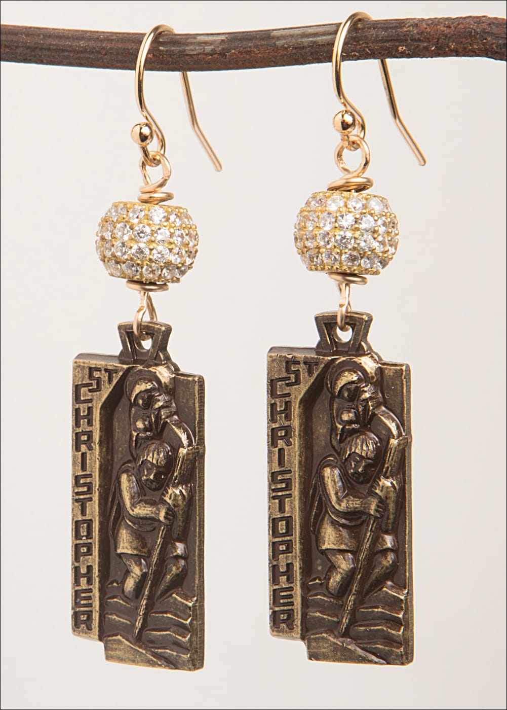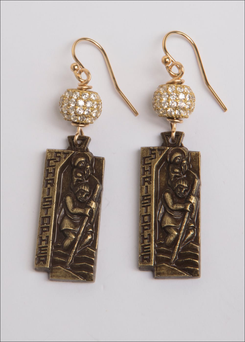 Vintage St. Christopher & Pave Crystal 2" L / 14kt. G.F. French Wires