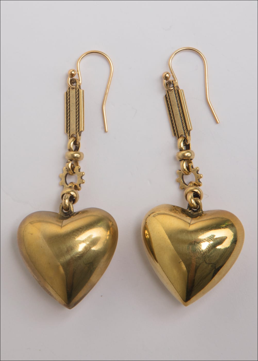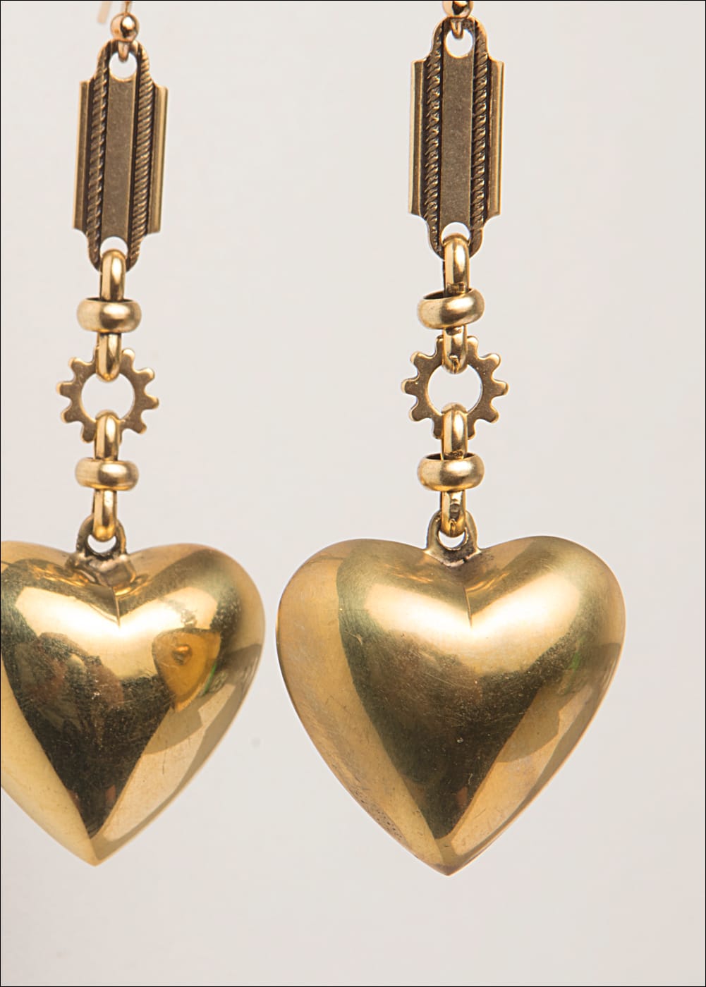 Vintage Puffy Heart / Plated Gold Chain 2.5" L / 14kt. G.F. French Wires