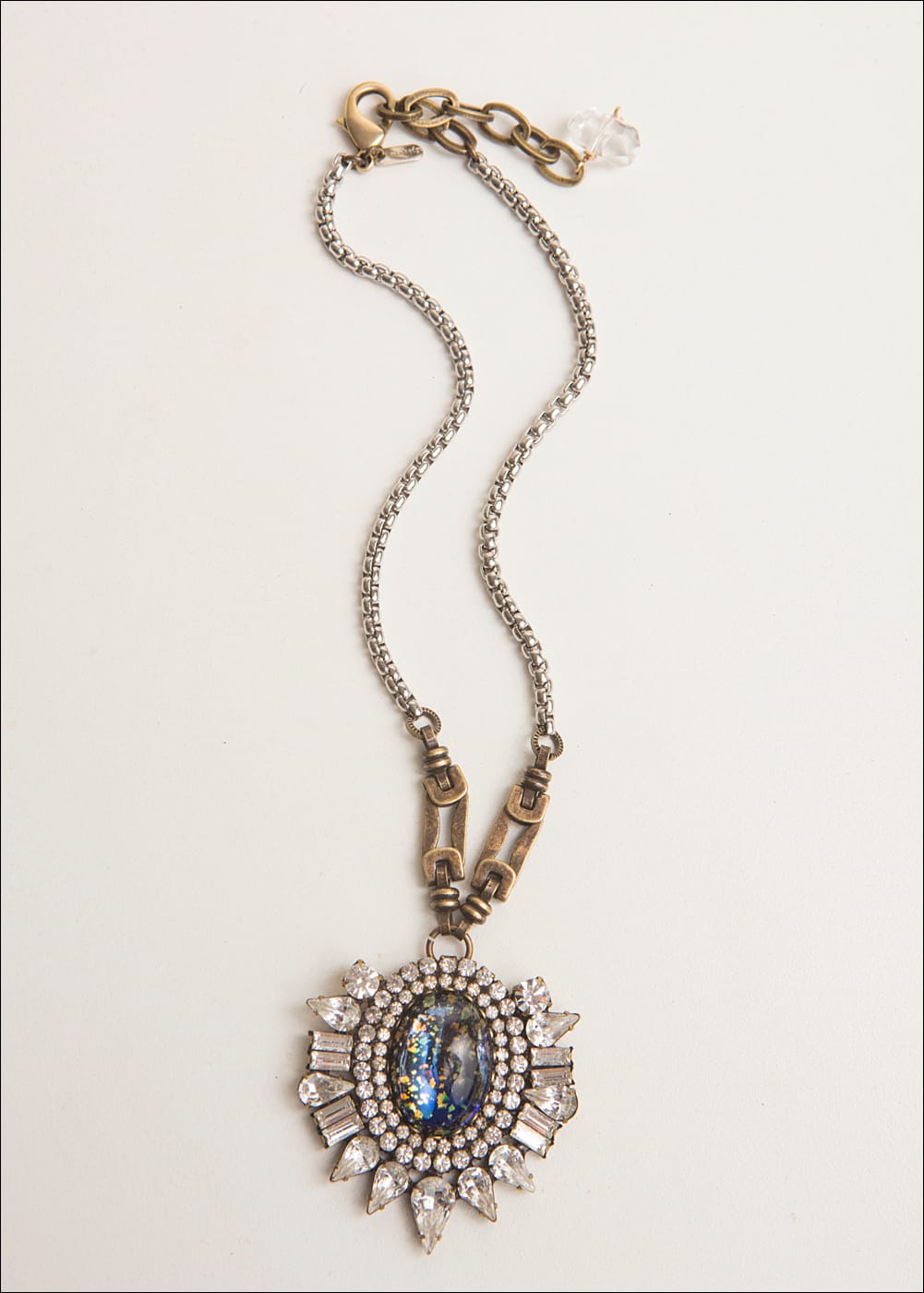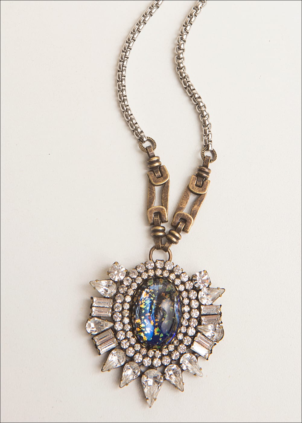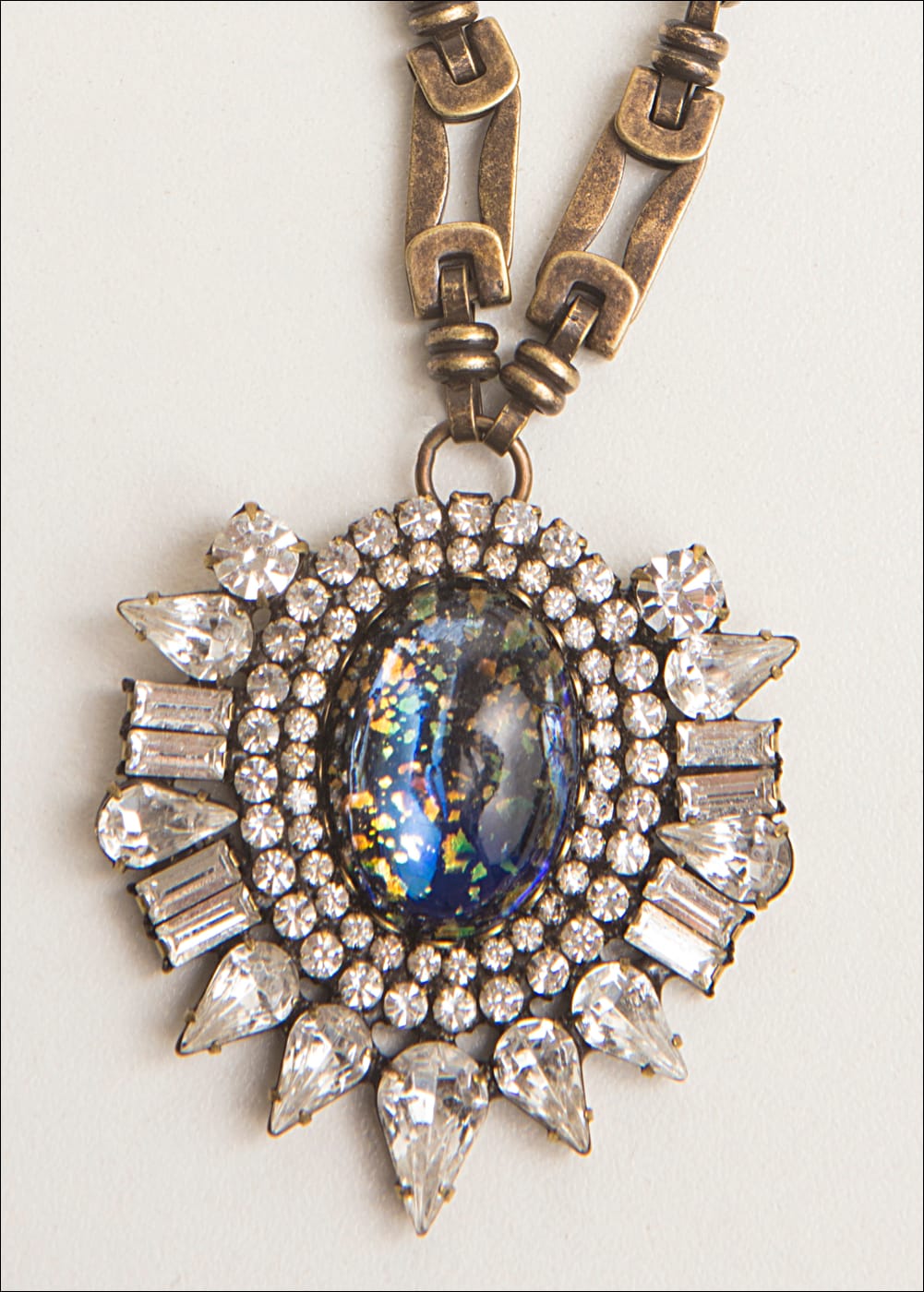 Vintage Glass Opal Cabochon & Crystal 15-17.5" Adj. Length