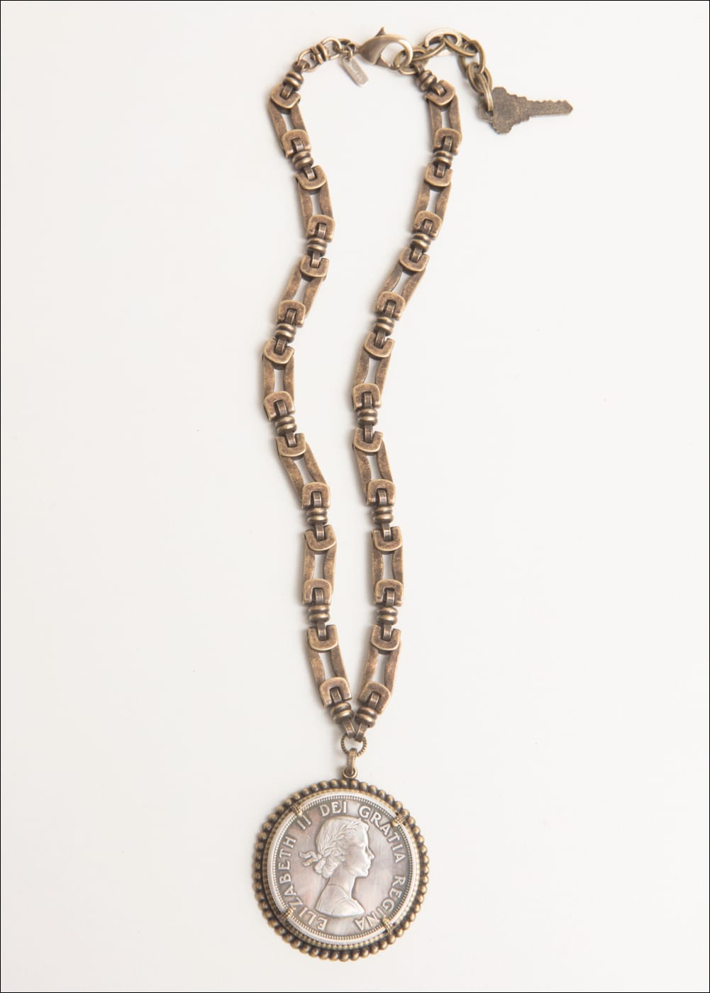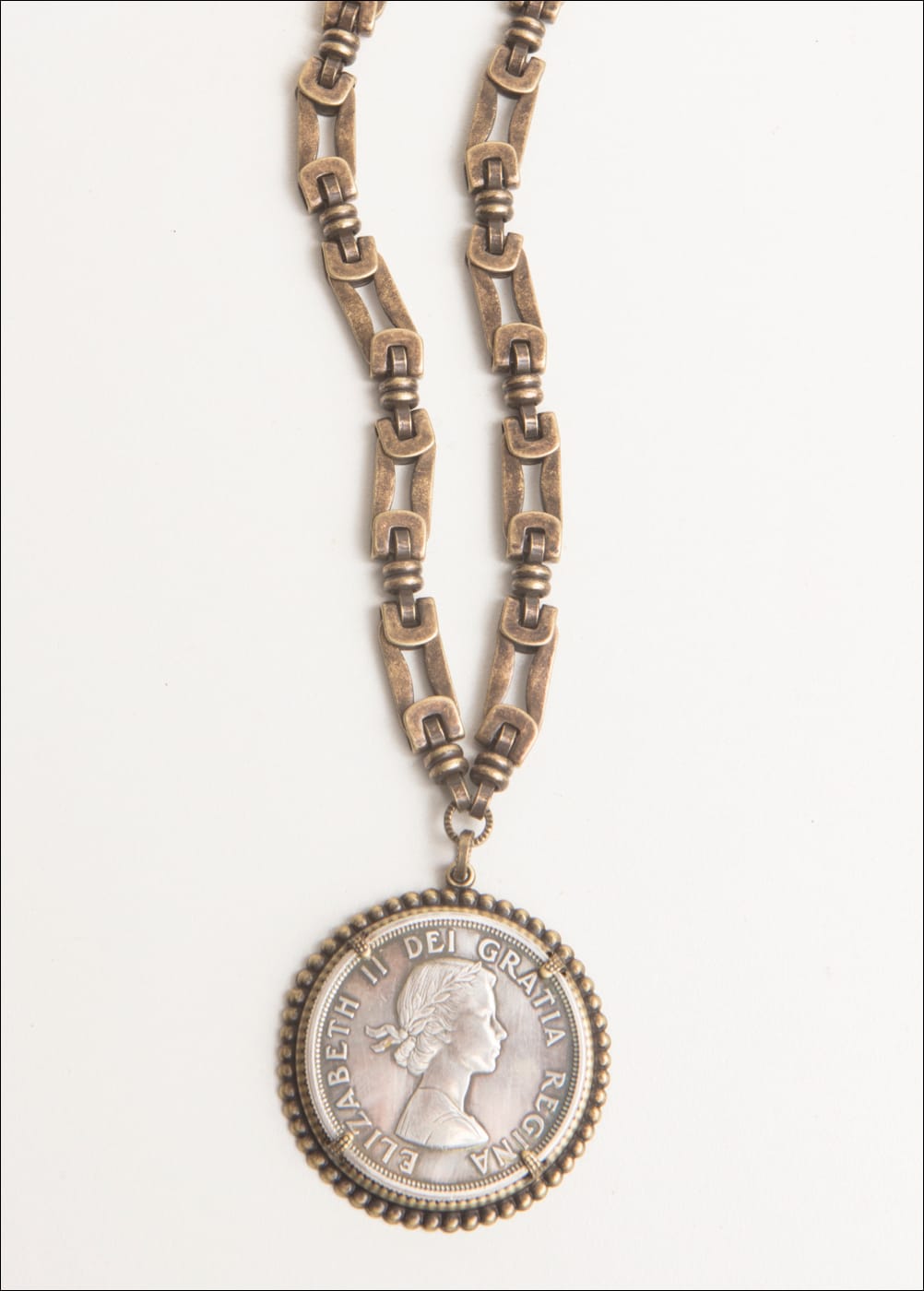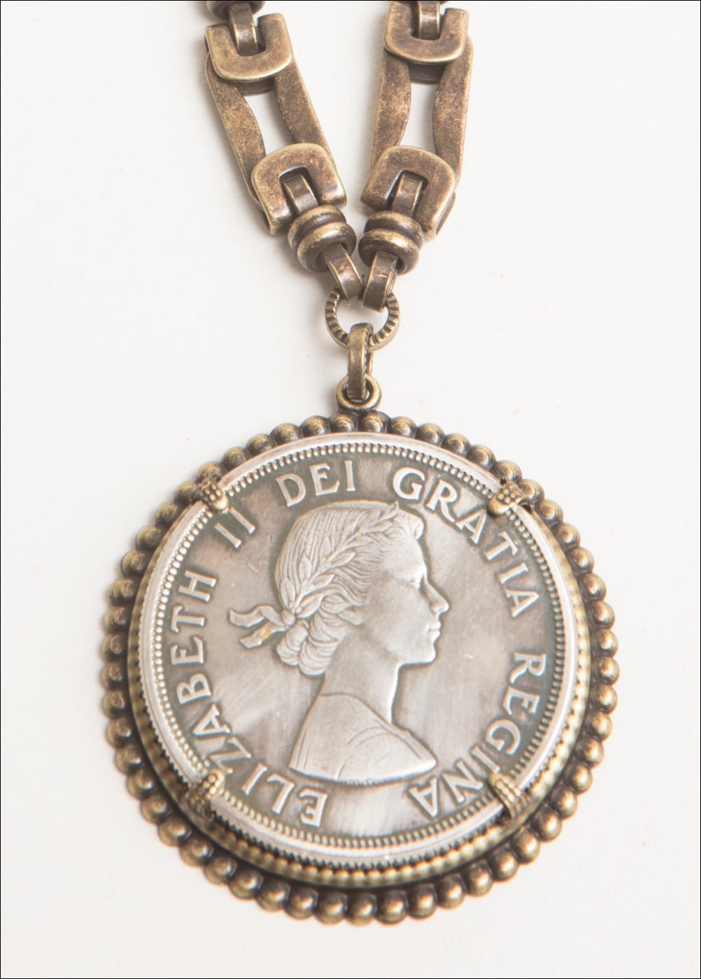 Vintage Solid Silver Canadian Dollar Brass Ox Chain / 17-18" Adj. Length
