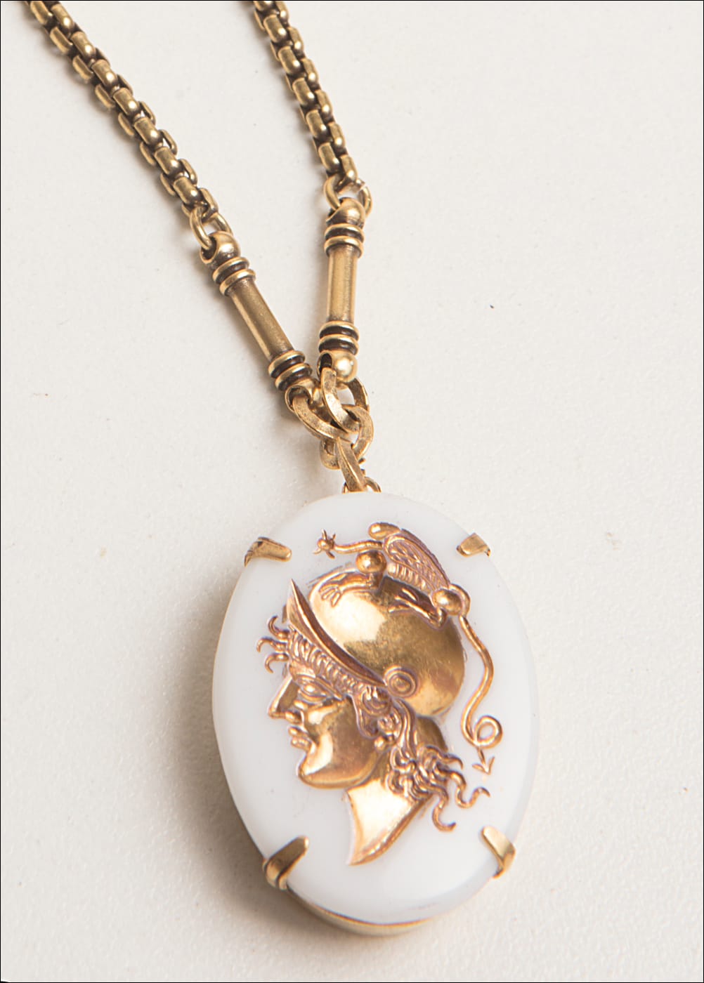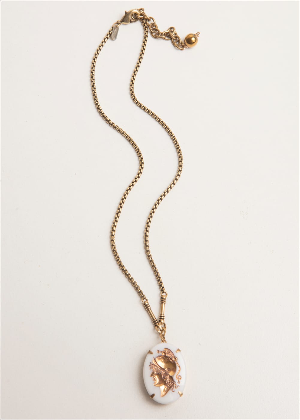 Vintage Warrior Cabochon / Plated Gold Chain / 17-19" Adjustable Length