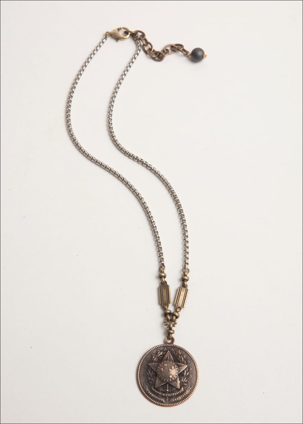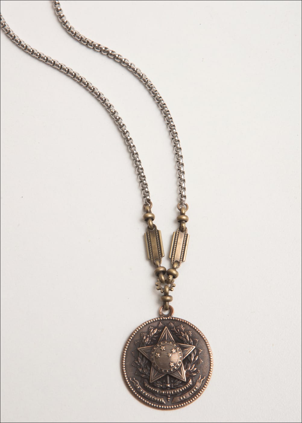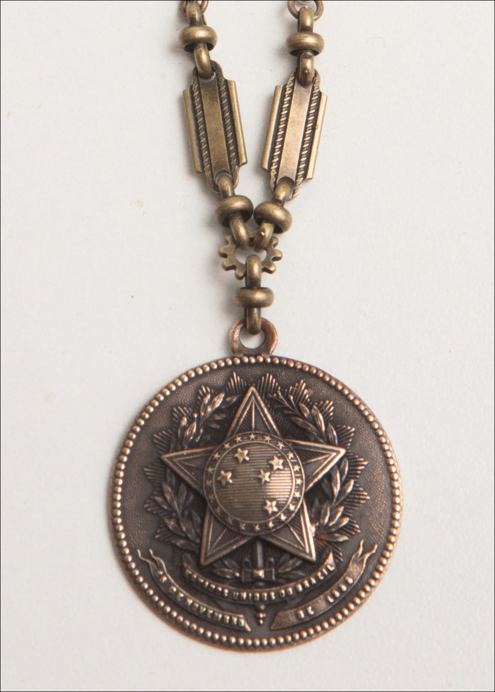 Vintage Coat of Arms of the US of Brazil Stainless Chain / 16.5-18.5" Adj. Length