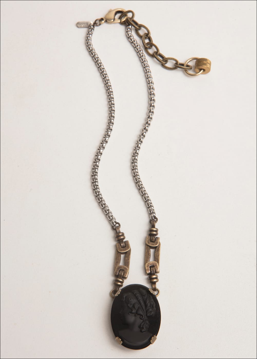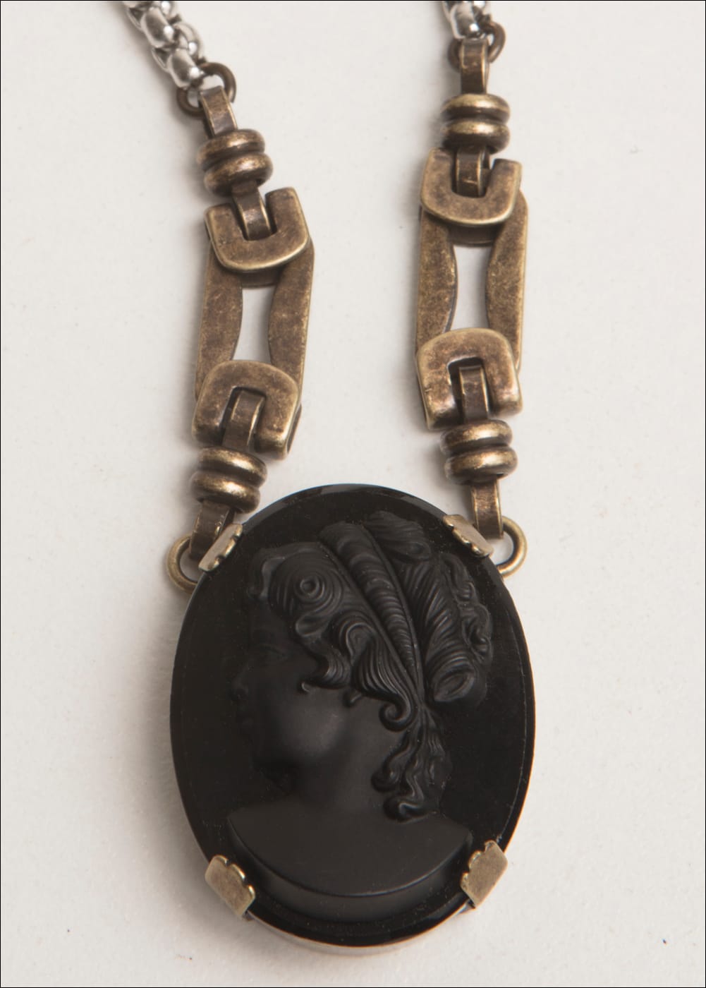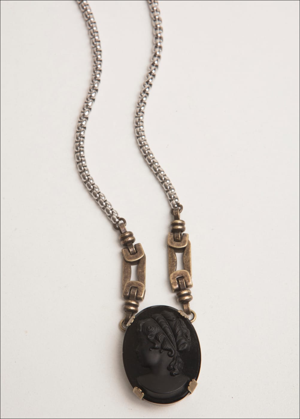 Vintage Jet Cameo / Brass Ox & Stainless Chain / 16-18" Adjustable Length