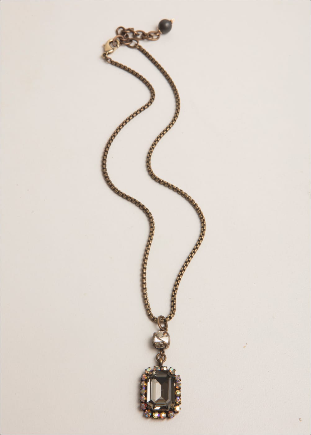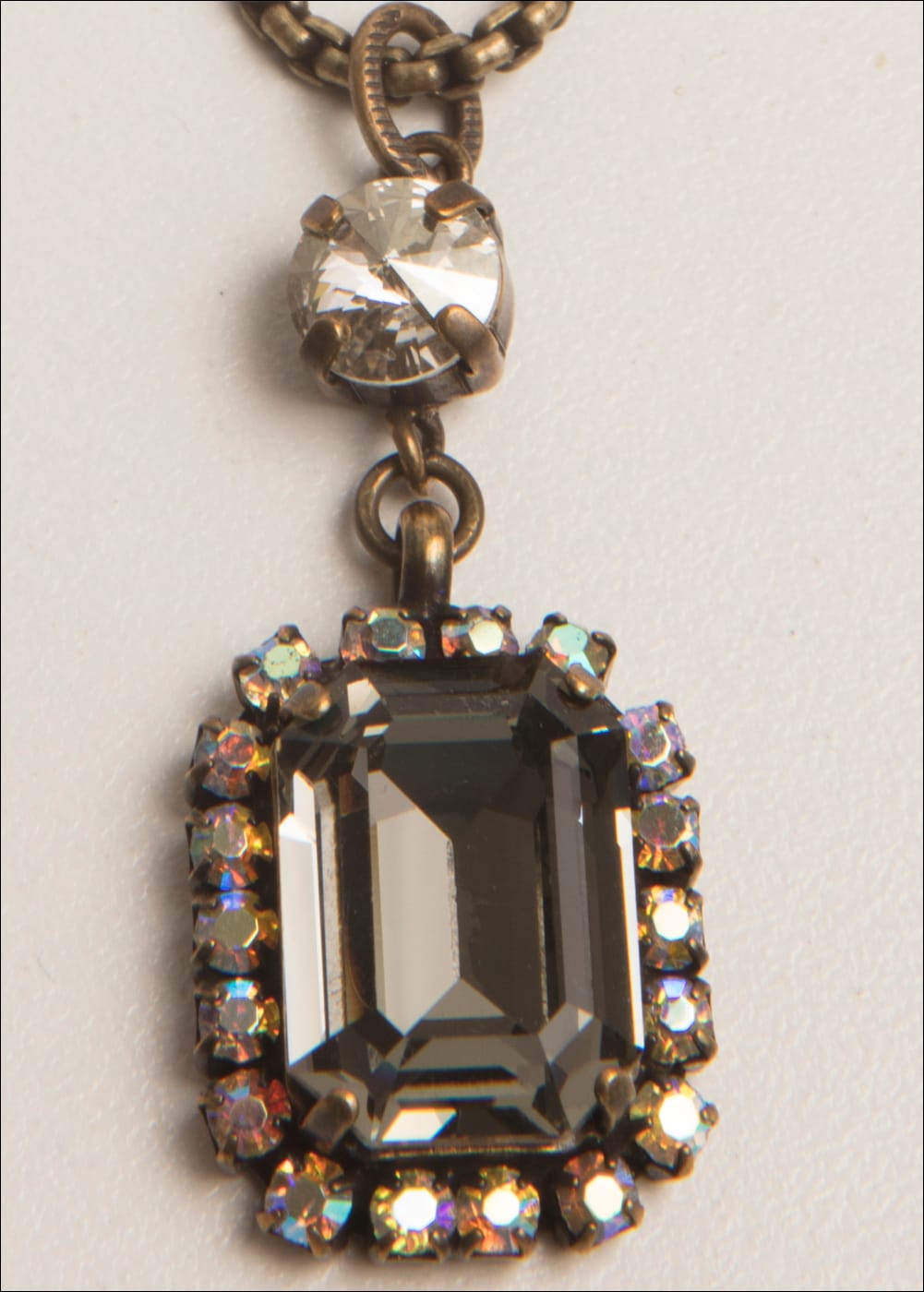 Vintage Emerald Cut Austrian Crystal Bronze Chain / 16.5-18.5" Adj. Length