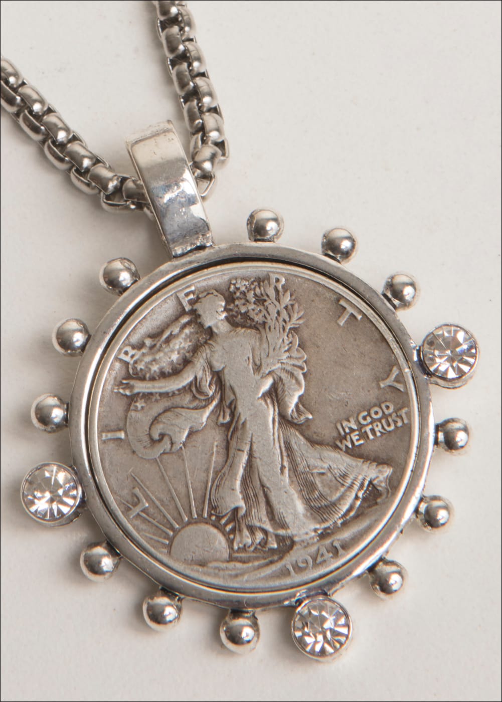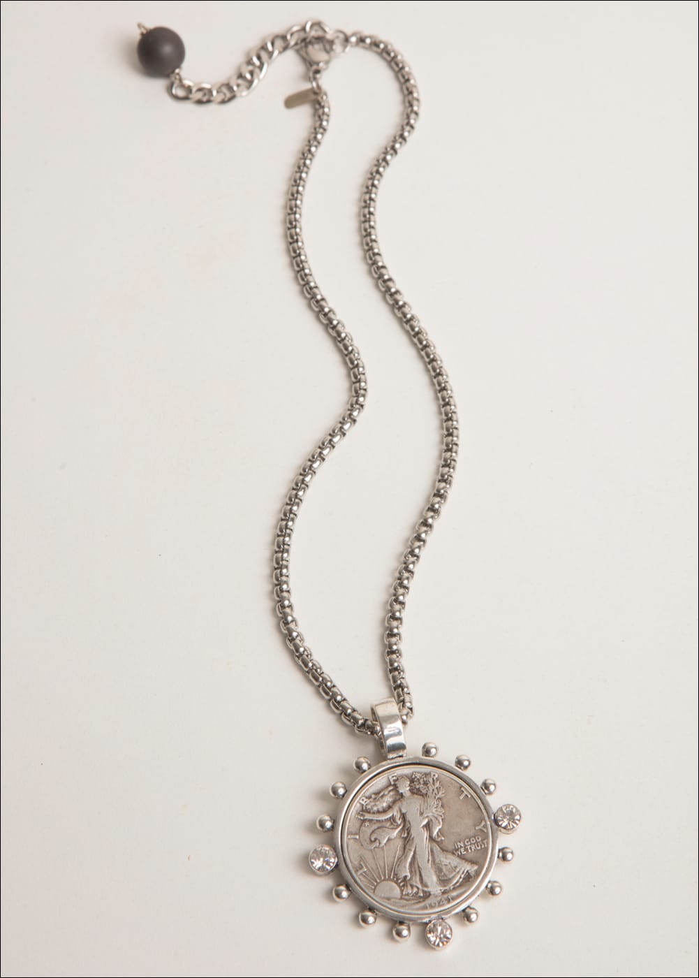 Vintage Silver USA Walking Liberty Coin Stainless Chain/16-18" Adjustable Length