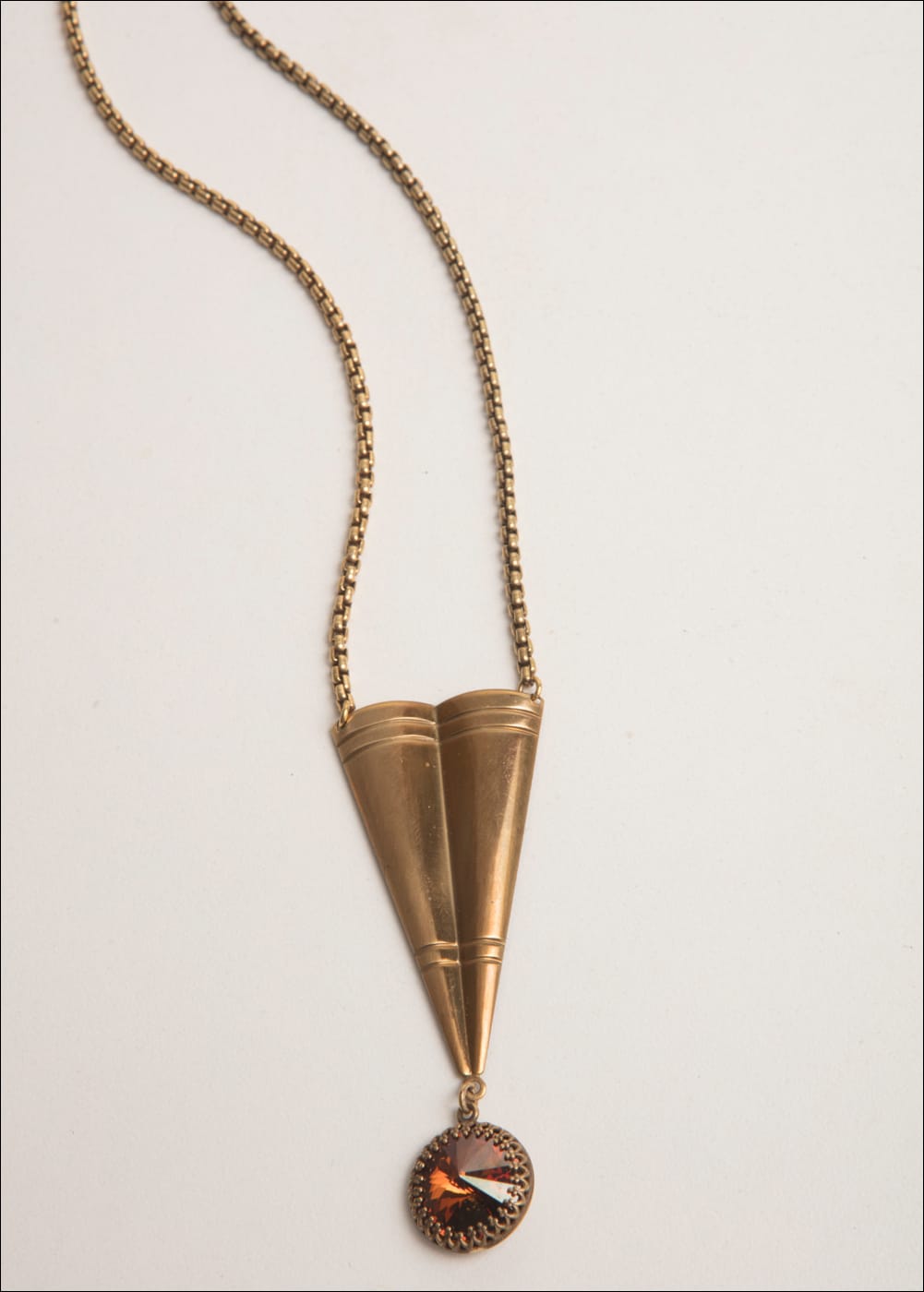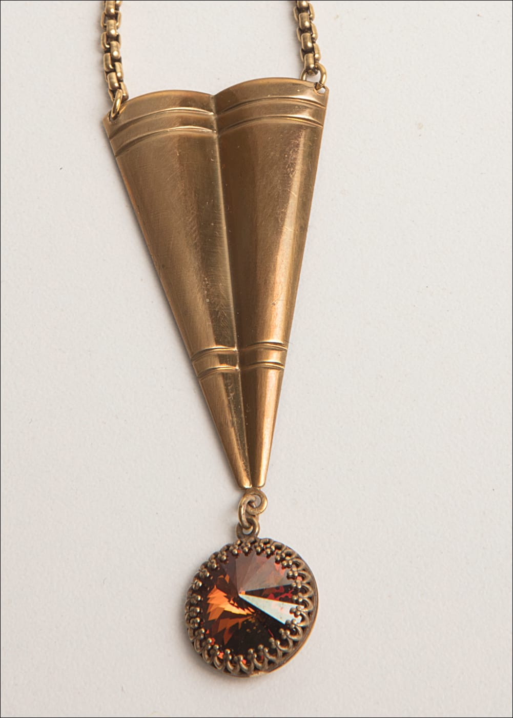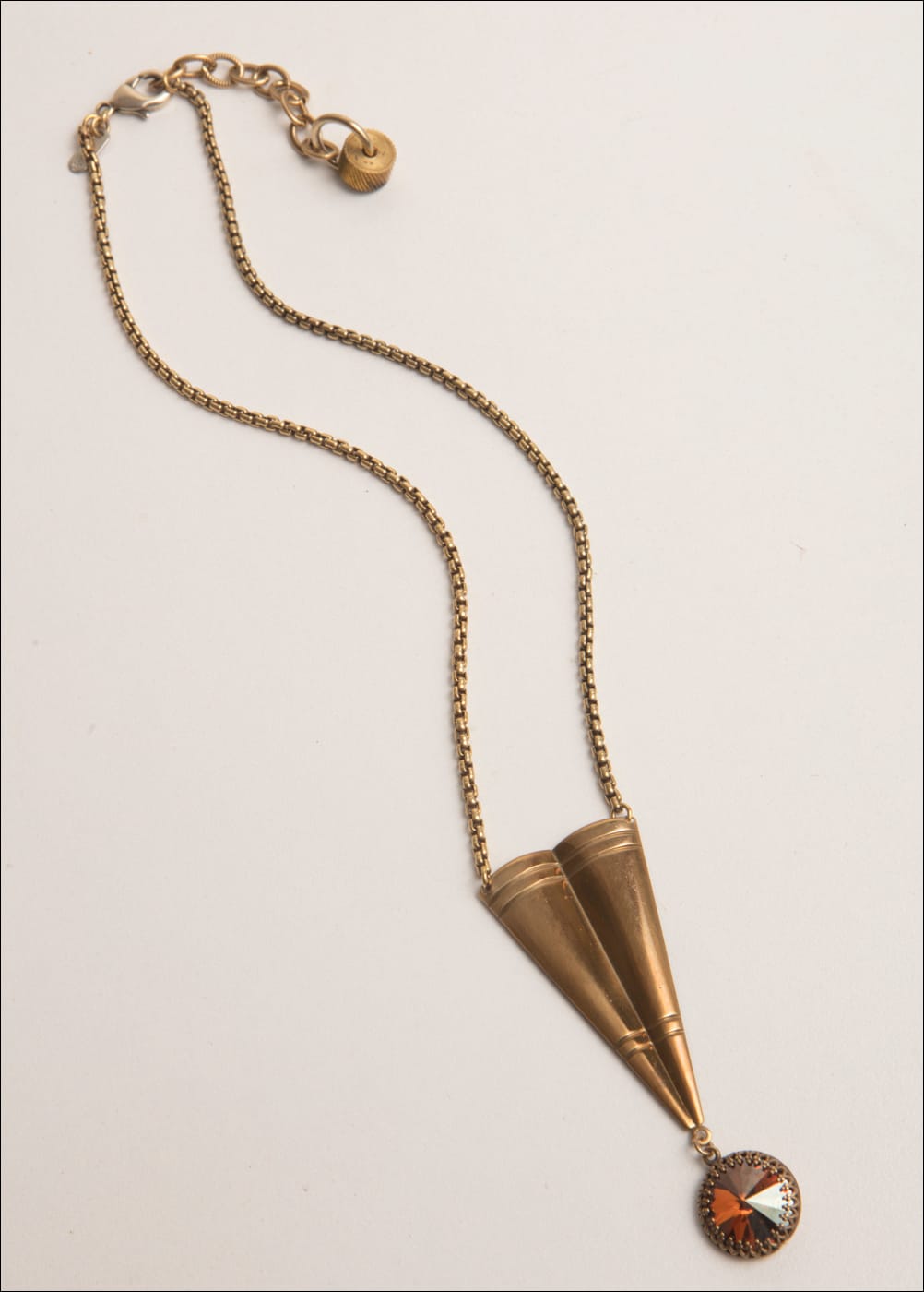 Vintage Bronze Pendant / Smoky Topaz Austrian Crystal / 16.5-18.5 Adj. Length