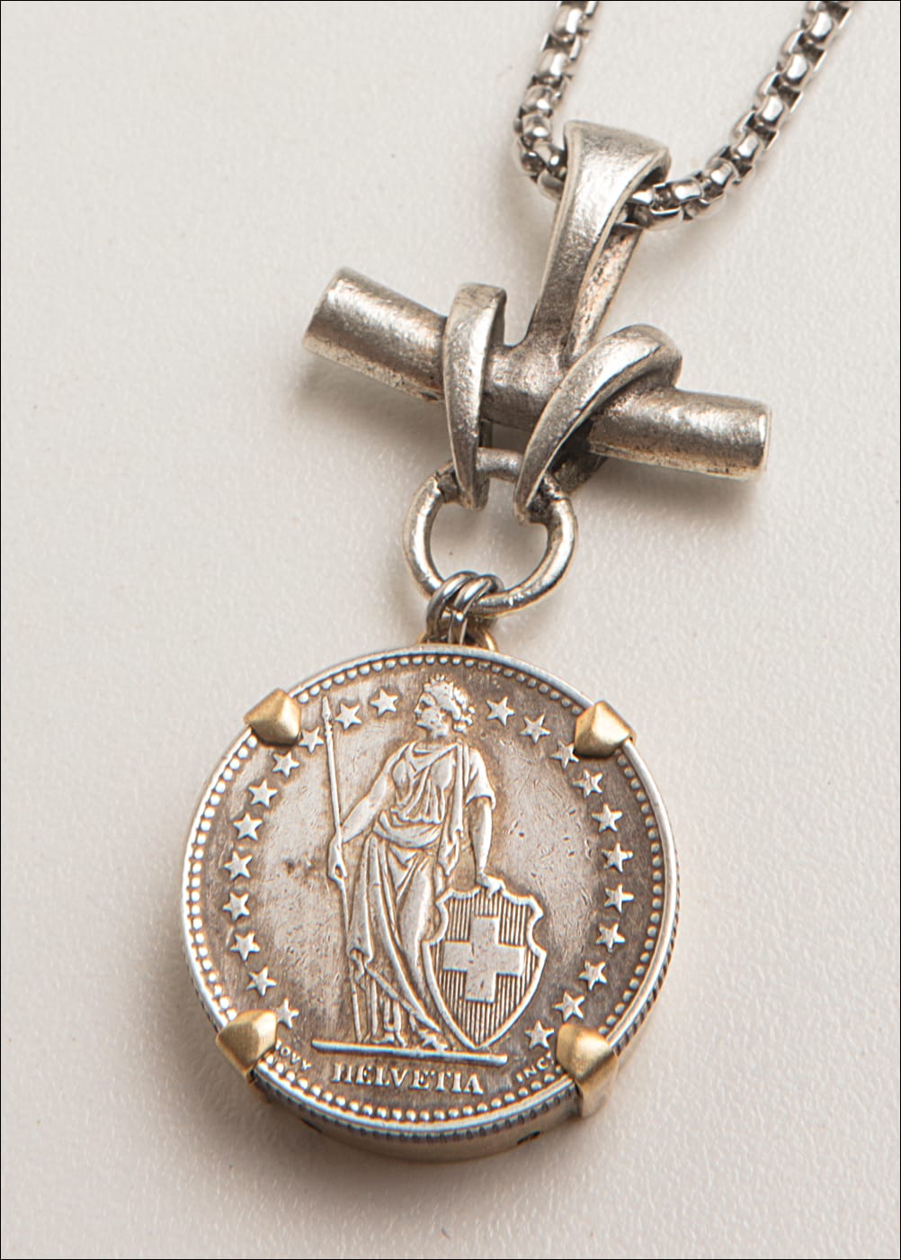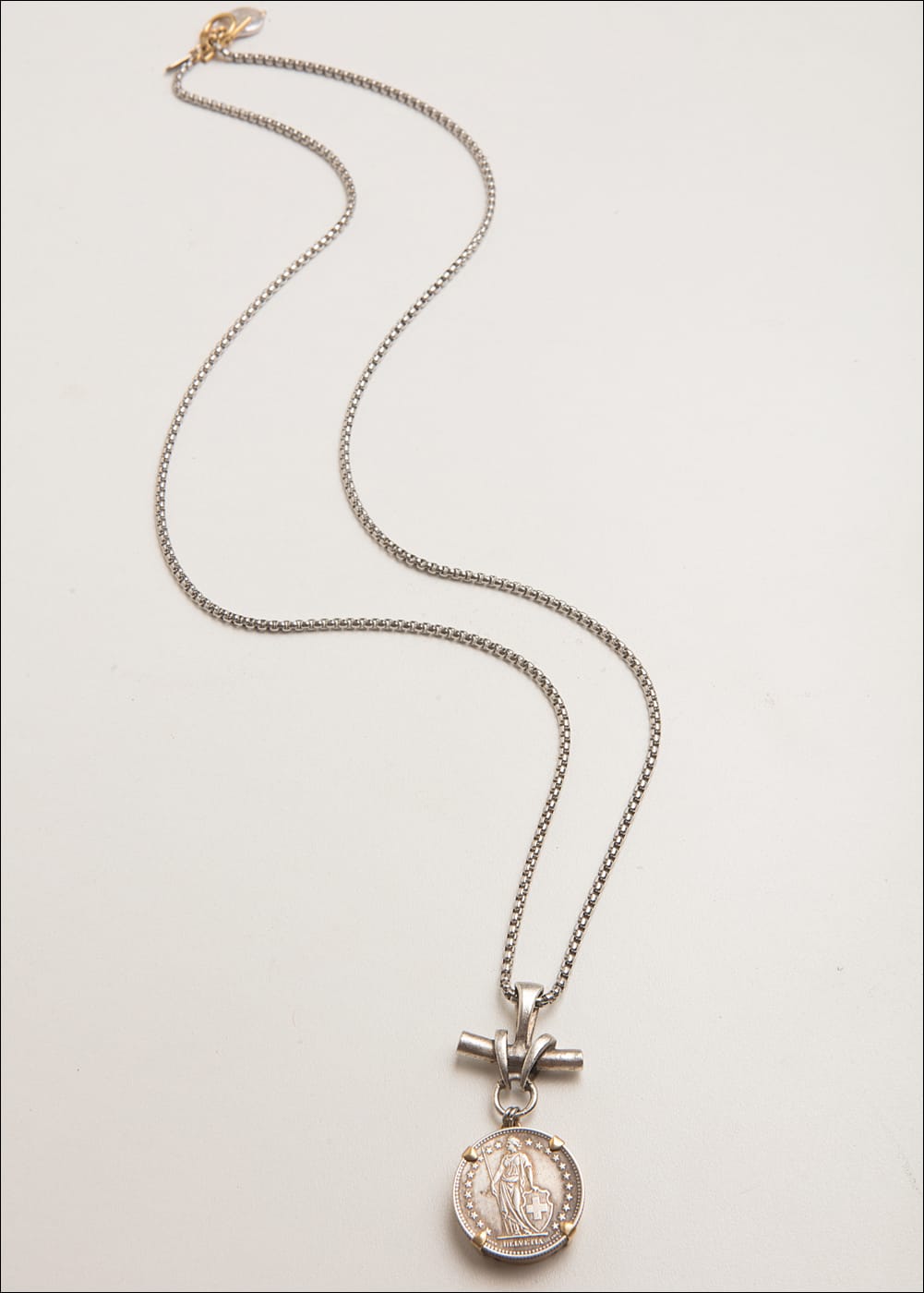 Vintage Swiss 2 Franc Helvetia Coin Stainless / 34" / Wear Long or Double
